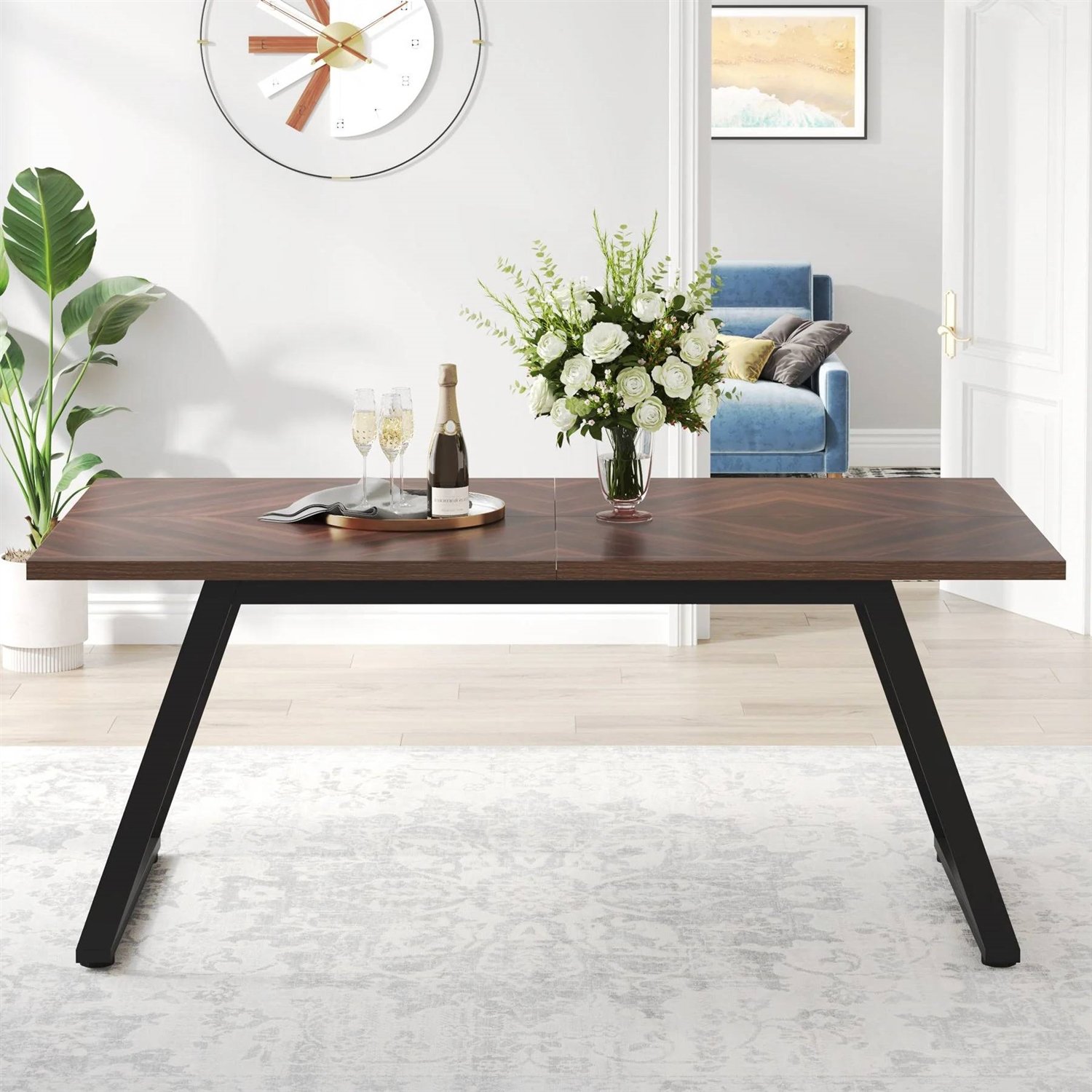 Modern Farmhouse 63-inch Rectangle Dining Table Brown Wood Top Black Metal Frame Modern Farmhouse 63-inch Rectangle Dining Table Brown Wood Top Black Metal Frame Modern Farmhouse 63-inch Rectangle Dining Table Brown Wood Top Black Metal Frame Modern Farmhouse 63-inch Rectangle Dining Table Brown Wood Top Black Metal Frame Modern Farmhouse 63-inch Rectangle Dining Table Brown Wood Top Black Metal Frame